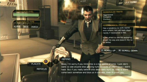 Para finalizar, o problema que mais me incomodou em DX human revolution. Vou ser franco aqui, se você ouviu falar mal do tempo de loading desse jogo, não falaram mal o bastante. É nível de Playstation 1! Absurdo. Em uma era com engines como a UDK, que carrega o próximo cenário enquanto você joga, esperar mais de um minuto para carregar um cenário recém visitado é ridículo. Digamos que você esteja morrendo múltiplas vezes em uma parte difícil. Você pode passar mais tempo carregando saves que jogando, é sério.