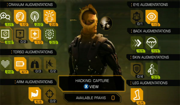 O jogo possui um sistema de XP parecido com Witcher 2, onde ao subir de level você pode melhorar uma habilidade de Adam. Mas diferente de Witcher, a maioria dos upgrades é realmente útil, sendo no mínimo valiosos para liberar caminhos alternativos pelo cenário.