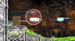 Mundo 5) Time and Decision: Toda vez que você volta no tempo, uma sombra do seu personagem aparece repetindo as ações que você acabou de desfazer, sendo que esta sombra tem o poder de manipular objetos que brilham na cor roxa. Desta forma, para utilizar a sombra, você deve primeiro fazer a ação normalmente e voltar o tempo, para que então a sombra entre em ação.
