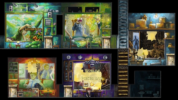 5 dos 6 mundos de Braid são acessados nesta tela.