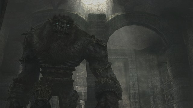 Volto lá, agora evitando com muito mais vontade os prójeteis. Depois de atirar, o colossus começa a escalar a parede, sendo que ele possui as patas suspeitamente brilhantes. Depois de duas flechas ele cai de costas no chão. Desço um andar e resolvo logo pular direto para ver se consigo causar um pouco de dano nele, e quase morro. Subo no colossus, mas não dá tempo de atacá-lo. Contudo, depois de conhecer o modus operandi, basta repetí-lo e pronto.