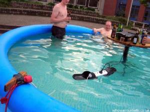 Depois do Retry, e agora muito mais “cabreiro”, resolvo dar uma reconhecida no terreno para ver se tenho alguma idéia. Vejo que existe nele uma torre maceta (amazonês para grande para porra) com degrais que poderiam ser usados para escalar. Faço o óbvio então: subo a porra toda, só para descobrir que lá em cima não há nada. Como tem luz solar, uso para ver os pontos fracos do Colossus, e vejo que, além da cabeça, são os 3 “tasers” mesmo. Pulo lá de cima e vou na cara e na coragem tentar matar o colossus. Subo novamente nas costas dele e vou me aproximando cuidadosamente do taser. Chegando perto, vejo a marca característica dos pontos fracos do jogo, espero bem e ataco ela, desligando o primeiro. Repito o mesmo para o segundo. Chegando no terceiro porém, algo bizarro acontece: em um momento que solto do colossus para descansar, caio rolando para o lado do colossus mas consigo me segurar. Contudo, a música de batalha para, e o colossus, ao invés de continuar nadando na superfície, começa a afundar rapidamente! Quando percebo, estou muito fundo e ficando sem ar. Solto o bicho e tento chegar o mais rápido possível na superfície para não morrer. Conforme o ar vai acabando, é impossível para mim não pensar na temível música de falta de ar de Sonic: