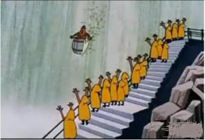 Procurando o bicho, a GPSword me leva até uma floresta onde quase tudo é escuro. Lá, uso a espada novamente e ela aponta para uma direção além de umas cataratas. Então resolvo fazer como aquele desenho educativo que via quando criança, e desço catarata abaixo (só que sem o barril).