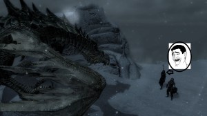 Com o grito aprendido, aplico um Mcfly (sabe, tipo… “De volta para o futuro”… péssima piada, eu sei. Só espero que ninguém pense que eu tô falando de uma certa banda). Imediatamente após meu retorno, Alduin decide cantar de galo pra cima de mim. heh…