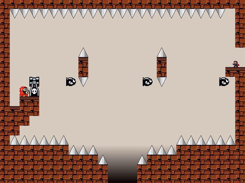 Direcionais movem o personagem, um botão pula e o outro atira, e você está pronto para ir… ir para o inferno. O jogo é satânicamente difícil. Os cenários são cheios de espinhos, abismos e outros elementos de morte instantânea. Aliás, você morre com qualquer peteleco, então é melhor estar sempre alerta.