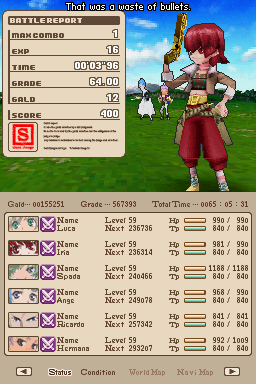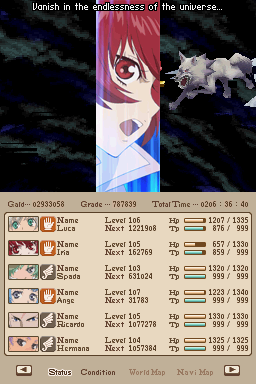 Tales of Innocence original é um jogo surpreendente, criado por Alpha System, também responsavel pela não tão surpreendente série de Crossovers de Tales of para PSP. O título era o segunda de um total de três tentativas de expandir a série para o sistema de grande sucesso da Nintendo: o NDS, o jogo foi bom o bastante para pagar pelos pecados do seu antecessor (se você sabe do que estou falando, sabe que isto “É UMA GRANDE COISA!), mas não o bastante para um lançamento nos States, isso porque a Bandai Namco não parece gostar de localizar a série, mas, a verdade é que você pode jogar esse jogo agora mesmo em seu DS! Isso assumindo que você tenha uma noção basica de English e que tenha um cartão R4 ou equivalente rodando em seu aparelho e…Quer saber? Esquece! Somos todos brasileiros e nós jamais iriamos alterar nossos video-games para jogar jogos de graça! Nós temos mas classe que isso! Mas só pra constar eis aqui o Link: