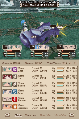 Algumas mudanças são até estranhas, como no inicio do jogo: No NDS o jogador vai direto para um evento onde o heroi fracote e covarde desperta seus poderes para ser capaz de lutar pela primeira vez. Já na versão R, Luca é obrigado por dois garotos a passar por uma dungeon introdutória sozinho, mas tudo bem! pois nosso herói andou imitando o Asura de seus sonhos e já sabe o basico do combate…espera um minuto! Ele já sabe lutar? Ele consegue matar monstros? E por que esses bullies ainda mandam nele? Fodam-se vocês! Eu sei fazer Demon Fang!
