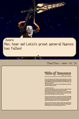 Uma nova introdução em anime feita pelo estudio Production I.G. onde o general Asura comanda suas tropas celestiais e…Uau! ele realmente gosta de falar! tanto que sua boca meche mesmo quando não há voz! Além disso, esse exercito celestial é todo cheio de genéricos, bem, de acordo com a história do jogo, os soldados-figurantes são jovens deuses que ainda não encontraram seu papel e…pera ai! Isso faz de Asura um criminoso por incentivar trabalho infantil? Tá! os caras do I.G são profissionais e experientes, então eu vou tacar a culpa no time do Sevens Code! Quem mando serem noobs?!