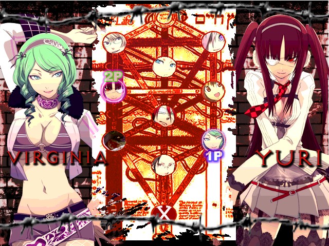 O layout dos menus e telas tem duas possibilidades: Ou eles são simples ao nivel “paint brush”, ou eles são um carnaval! Veja a tela de seleção de personagens: É tão carregada de coisas “iradas” que eu nem sei pra onde devo olhar! Eles precisavam mesmo desse arame farpado passado na horizontal? Duas vezes? Que tal fazer faiscas sairem pelas laterais? Se ainda estiver muito simples, sempre há a opção de fazer chover sangue! Tá, nem tudo é ruim, a idéia de usar a cabala de sephiroth pra posicionar os ícones de seleção de personagens foi bem legal. A proposito, alguem mais conseguiu notar a cabala no meio de toda essa bagunça? E o que a cabala tem a ver com a estória desse jogo?