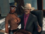Quando tento ir embora, Sha’ira pede que me mandem falar com ela(com um close totalmente necessário na sua retaguarda smúrfica). Ela então me explica que um “amigo” general turian (raça, não nome) dela anda espalhando boatos sobre a coitada. Como eu sou um militar, eu devo ser bom o bastante para convencê-lo a parar. Ok, ajudarei a moça. Mas primeiro deixa eu comprar uns itens.