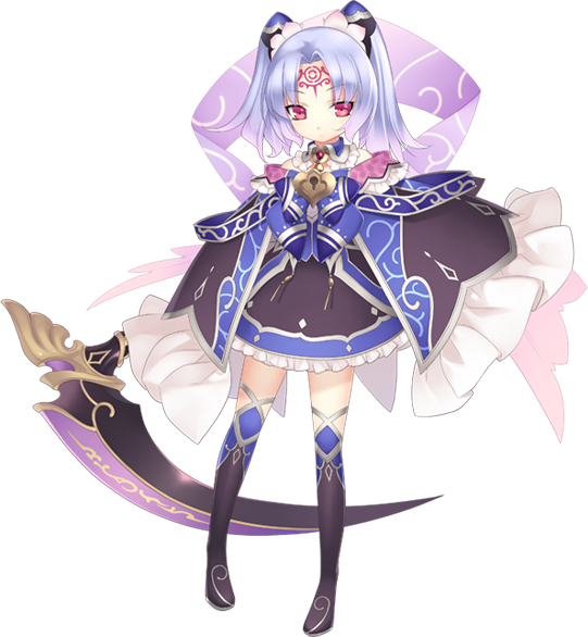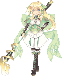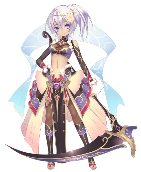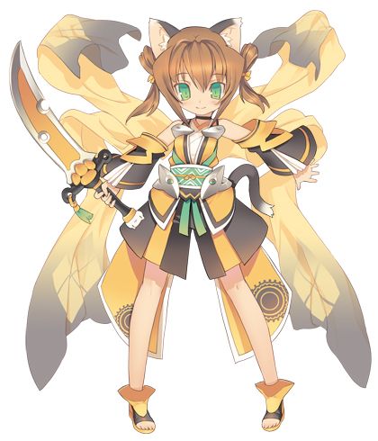 Treinou com o mesmo mestre que a Kunka, e, por isso, foi escolhida como sua sucessora. Sua personalidade séria e inocente fazem dela uma poderosa Tsundere. Chama o herói de tarado mais vezes do que pelo nome dele. Ela é uma mestiça entre a raça bestial de Neocoloms e humanos. Sabe o que isso significa? Dois pares de orelhas!