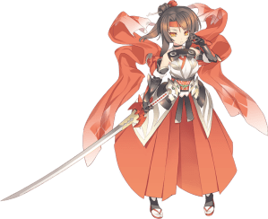 Ela é uma samurai-loli que veio de uma ilha longínqua para ajudar o herói. Sua comida favorita é banana de chocolate e seu hobby é dormir. Uma figura exemplar para todos os samurais! Sem nem esquecer de acrescentar o “De Gozaru” no final das frases. Parabens!
