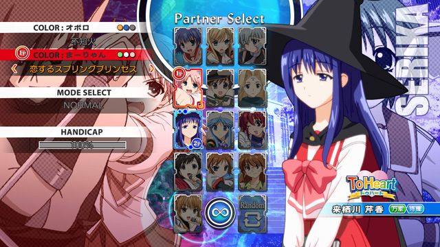 Se esse jogo tem um defeito grande, é com o seu roster de personagens. Tem muitas garotinhas colegiais! Tá certo, eu entendo que To Heart 2 é o maior sucesso atual da empresa, e que todas as personagens relevantes são colegiais, mas isso já é exagero. O pior é que algumas personagens que sabem lutar são apenas parceiras, como a Satsuki de Routes.