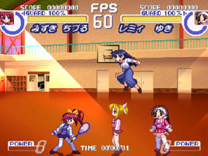 Entre algumas etapas, você verá uma cena com Sango de To Heart 2, que se encarrega de fazer a “exposition” da estória para o jogador. O estranho é que, nesses eventos, não importa o personagem que você esteja jogando, ela sempre dirá a mesma coisa, o que é bem decepcionante, pois você nunca irá conseguir arrancar as reações desejadas, por mais ridículo ou bizarro que seu lutador seja. Gerando cenas como essa: