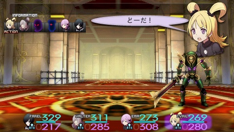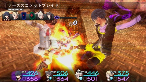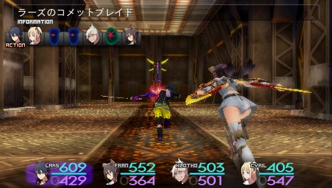 O sistema de batalha é parecido com o de Saigo no Yakusoku, ou seja, em primeira pessoa por turnos. Porém, quando você faz um ataque especial, roda uma animação de seu personagem destruindo o inimigo em vários ângulos de câmera diferentes, muito semelhante à 7th Dragon 2020. Todas essas animações são muito lindas e empolgantes, ao ponto que é difícil de se cansar de vê-las. Eu queria ter um vídeo pra mostrar o quão Awesome alguma delas são…peraí…Eu tenho!