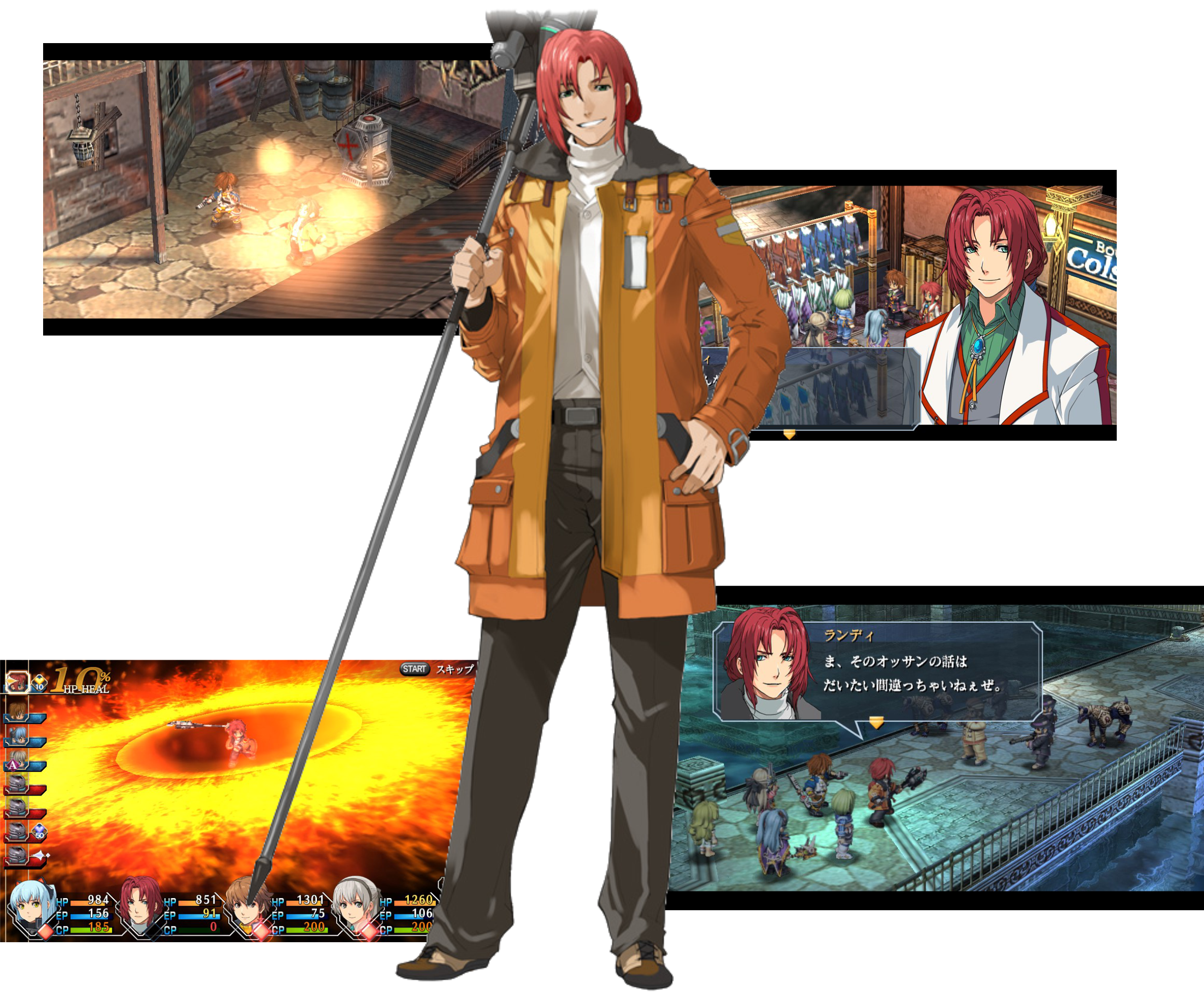 Esse remake transformou a desengonçada e estranha abertura em Flash da versão do PSP em um belíssimo anime. Curioso, essa série só usa Flash e só ganha aberturas em “full motion” quando outras empresas decidem fazer um remake. Pra que tanto ódio por animação? Parece até que o anime tentou estrupar a Falcom mas o flash chegou na ultima hora e à salvou, digo isso porque os jogos dela não tem animação normal desde…cara, acho que nunca. Acho que tinha uma no PSP. Acredito que a Falcom deve ter é problema com dinheiro, já que é raro ter vocal nos temas principais dos seus jogos também.