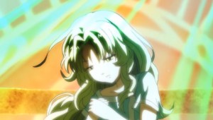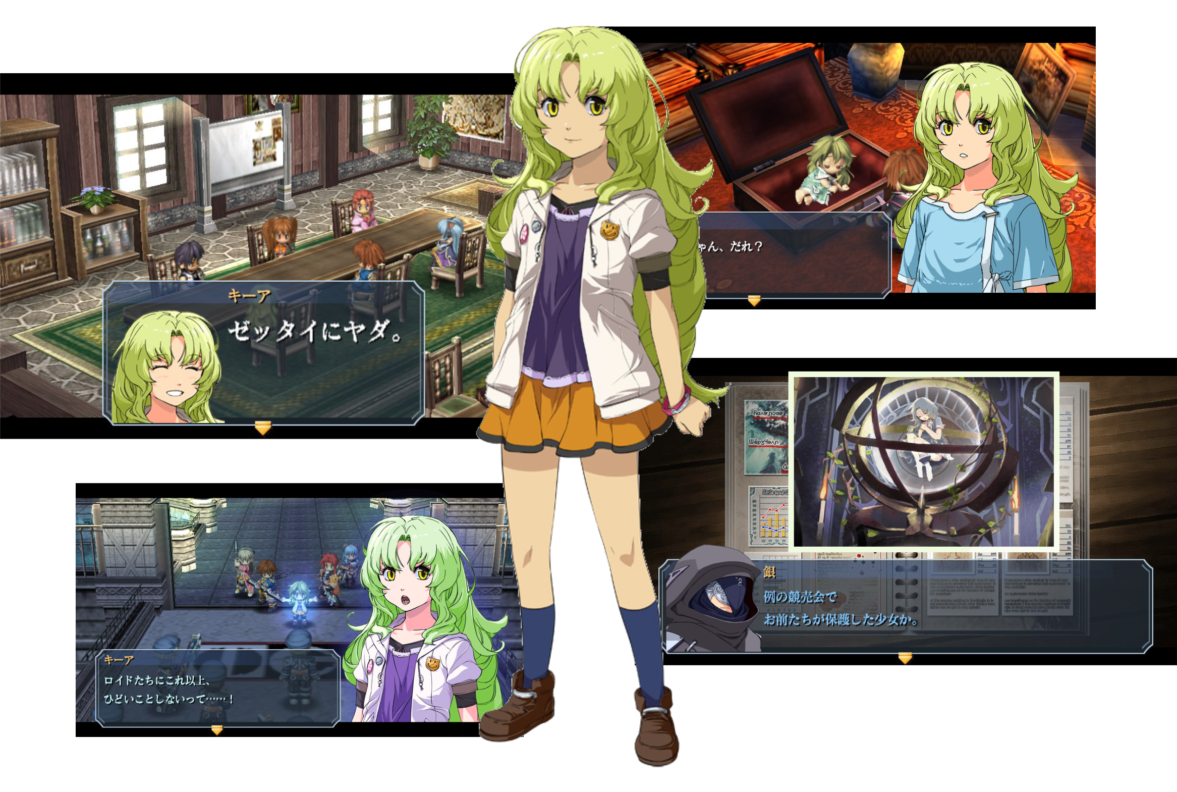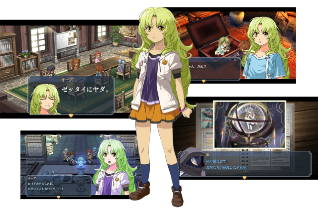 Lembra do que eu disse sobre personagens importantes que demoram para aparecer e não fazem quase nada? Infelizmente esse é o caso da KeA, garotinha que aparece no final do gigantesco capítulo 3 e que, por acaso, é a HEROÍNA PRINCIPAL DO JOGO! KeA não participa das batalhas (ficando apenas na torcida) mas logo fica evidente que toda trama do jogo gira em torno dela. É como se ela fosse a Athena dos Cavaleiros do Zodíaco, só que mais amável e dublada pela Kugimiya. Não existe nenuma pista sobre sua existência, até que ela é encontrada por acaso dentro de uma mala.