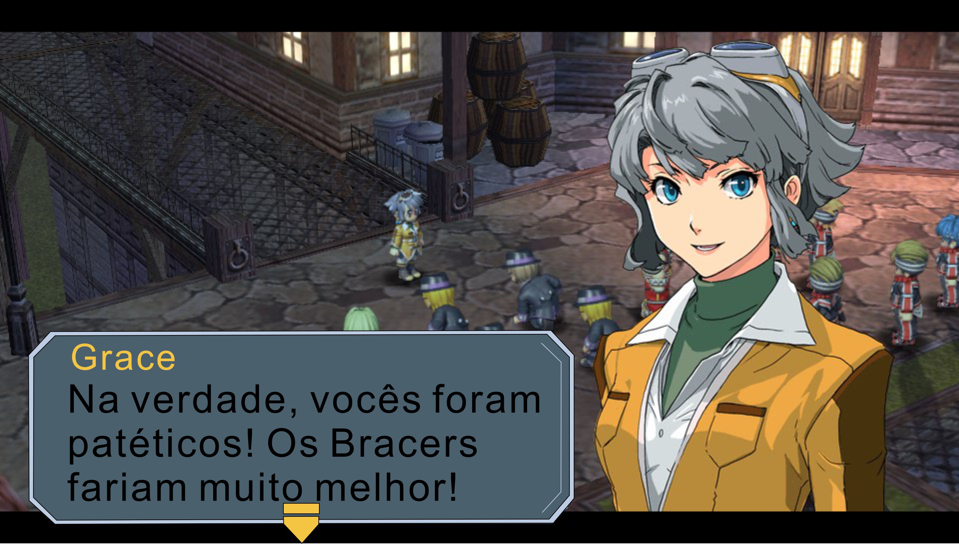 Malditos japoneses pervertidos! Anyway. Essa divisão policial foi feita para trabalhar diretamente com o cidadão, se prontificando a resolver qualquer problema, mesmo que não haja uma ocorrência. Ou seja, semelhante aos mercenários. Porém, diferente dos Bracers, o pessoal da S.S.S. pode investigar e resolver casos que envolvam pessoas poderosas, alem de terem autoridade de prender suspeitos (Os Bracers só podem agir quando já for concluído que alguém é um criminoso). Interessante, né? Na verdade, menos do que parece. Todos da cidade tratam os protagonistas como um bando de merdinhas, mas adorariam lamber as bolas de qualquer Bracer que estiver por perto. É bem irritante! Isso geralmente acontece pra te dar uma maior satisfação pra quando os personagens principais se tornarem heróis, infelizmente, seus esforços só são reconhecidos quando já tarde de mais: No final do jogo, justamente quando não importa mais e você já está de saco cheio desses civis ingratos. Malditos Bracers!