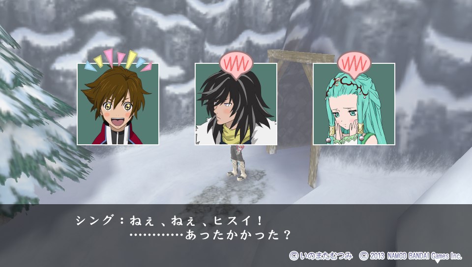 Os modelos 3D são de boa qualidade e estão maiores e mais detalhados do que os do Innocence R. O lip-sync ainda é uma porcaria. As bocas não foram modeladas nos modelos 3D dos personagens, sendo apenas texturas trocadas entre 3 frames para parecer que a boca está mexendo. Eles deveriam ir atrás de jogos que usam a mesma técnica de maneira melhor, como God Eater, eu sei que esses jogos não tem muita ligação já que “Tales of” é da Bandai Namco e God Eater é da…Bandai Namco…Porra! Não custa pedir uns conselhos dos vizinhos pessoal!