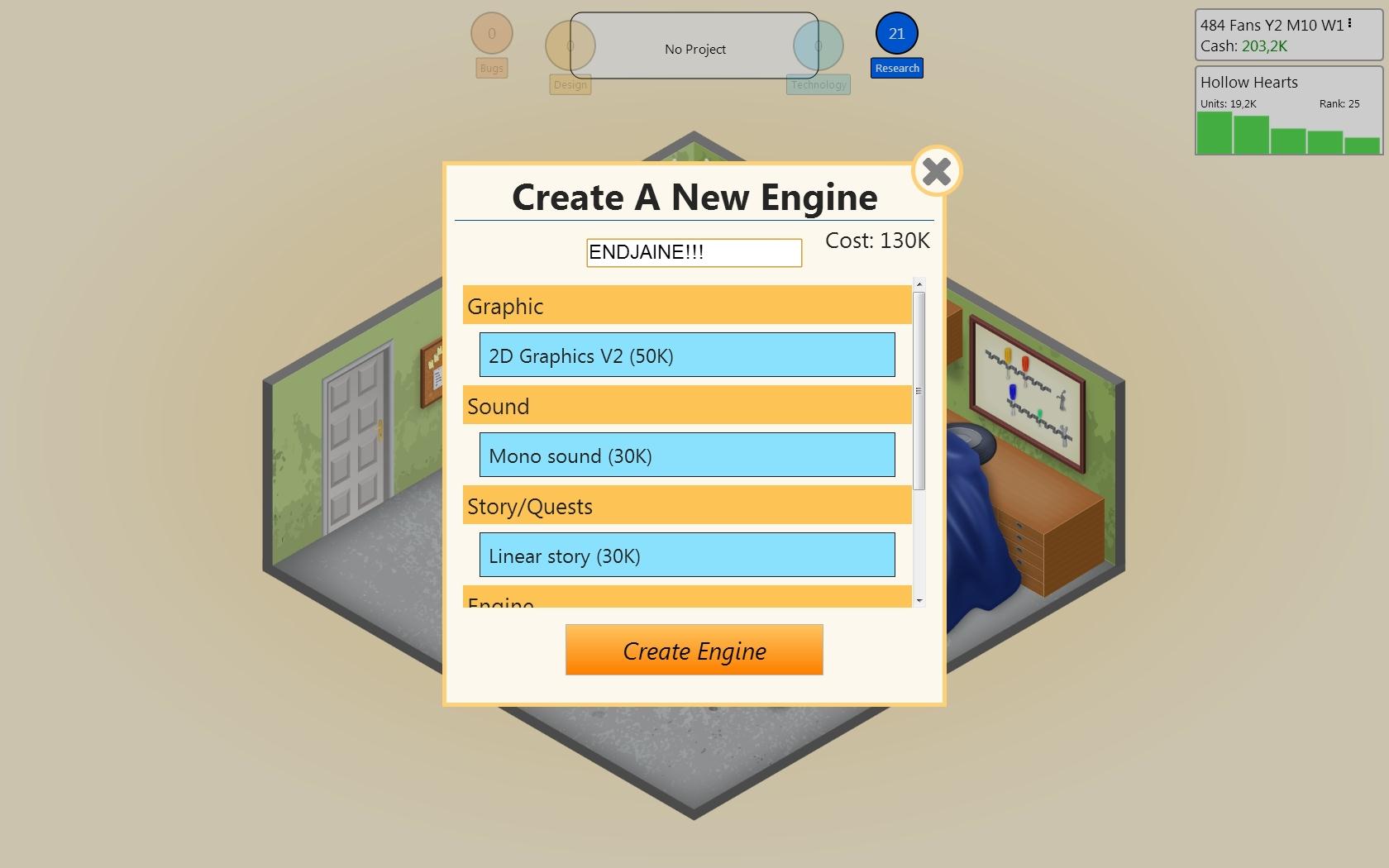 Você escolhe o tema e o gênero dos jogos que você deseja desenvolver e as características nas quais você deseja se concentrar, sendo que essas escolhas irão definir o quão bem (ou mal) recebido o título será quando chegar ao mercado.