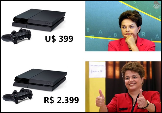 Aí você tá xingando a Dilma. Pra ser honesto, eu também, o imposto brasileiro é ridículo. Mas o que me impressiona é a burrice da Sony e a minha inocência… Ao ver essa conta eu confirmei o óbvio. Tipo, a Sony vai tentar acelerar a produção do console no Brasil e isso deve abaixar o preço. Bem…