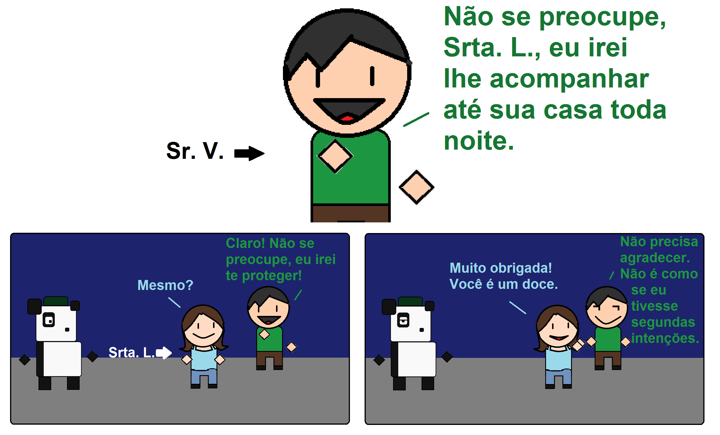 Acontece que naquela época, talvez por ser ainda mais jovem, talvez por ainda estar solteiro, mas definitivamente por ainda não possuir um Computador Master Race e um Console de Mesa, eu era uma pessoa muito mais sociável. Por “muito mais sociável” entenda que eu conversava com 3 pessoas na minha sala de aula, e considerava uma delas minha amiga. Essa amiga residia à algumas quadras da faculdade, no entanto nossas aulas finalizavam às 10 da noite e o caminho para seu lar era mal-iluminado e deserto, passando uma aparência pouco segura. Por essa razão ela inicialmente não estava certa se queria estudar naquele horário, o único disponível para o curso que havíamos escolhido. Era a oportunidade para que alguém, em um ato cavalheirismo, se oferecesse para guiar aquela dama até seu destino, servindo de escolta e a protegendo de possíveis perigos. E eis que esta pessoa surgiu…. em forma de outro colega de classe meu.